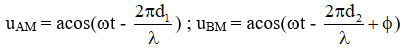 Xét điểm M trên AB; AM = d1; BM = d2 (d1 > d2)