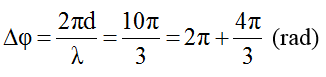 Độ lệch pha của M và N là: Δφ = 2πdMN/λ = 2π.5,75λ/λ = 10π + 3π/2