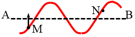 Ví dụ 2: Một sóng truyền theo phương AB. Tại một thời điểm nào đó, hình dạng sóng được biểu diễn trên hình vẽ. Biết rằng điểm M đang đi lên vị trí cân bằng. Khi đó điểm N đang chuyển động như thế nào?