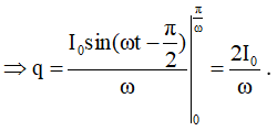 Câu 2. Dòng điện xoay chiều hình sin chạy qua một đoạn mạch có biểu thức có biểu thức cường độ là i = I0cos(ωt - π/2), với I0 > 0. Tính từ lúc t = 0 (s), điện lượng chuyển qua tiết diện thẳng của dây dẫn của đoạn mạch đó trong thời gian bằng nửa chu kì của dòng điện là