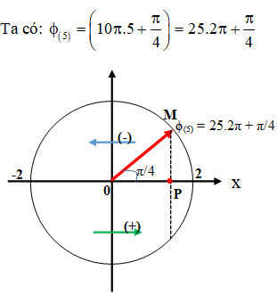 + Chọn gốc thời gian t = t0 = 0 và dùng vòng tròn lượng giác để viết pha dao động: ϕ = ωt + φ