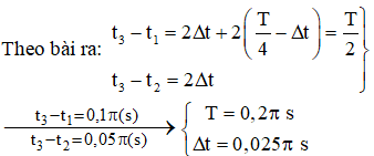 Do vậy: t2 – t1 = T + T/3 = 9,2 – 1,2 → T = 6s→ ω = 2π/T = π/3.