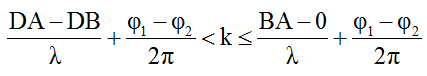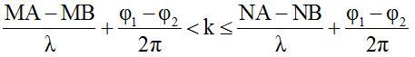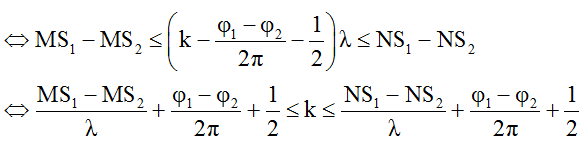 Các bài toán trên luôn sử dụng bài toán tìm số cực đại và cực tiểu trên đoạn thẳng nối hai điểm M và N trong vùng có giao thoa (M gần S1 hơn S2 còn N thì xa S1 hơn S2), đó là số các giá trị của k (k ∈ Z) tính theo công thức sau (không tính hai nguồn):
