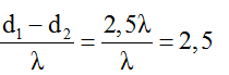 Vì hai nguồn ngược pha nên điều kiện cực tiểu cho điểm bất kỳ: d1 – d2 = kλ và vân cực tiểu có bậc k.