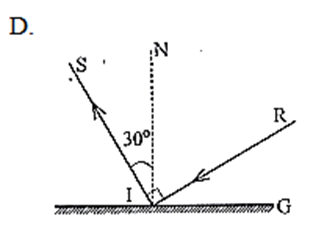 Bài 8: Một tia sáng chiếu tới gương phẳng với góc tới là 300. Hình vẽ nào sau đây biểu diễn đúng sự phản xạ của tia sáng trên gương?