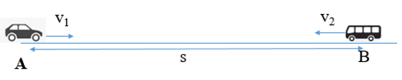 Ví dụ 1: Từ bến xe A và bến xe B có hai xe ô tô xuất phát cùng lúc và đi ngược chiều nhau. Ô tô đi từ A với vận tốc 40km/h và ô tô đi từ B đến A với vận tốc 60km/h. Hỏi sau bao lâu kể từ lúc xuất phát hai xe gặp nhau? Biết khoảng cách từ A đến B là 120km?