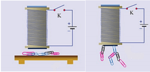 Khi đóng công tắc ống dây có lõi sắt và thép hút các kẹp giấy