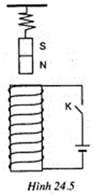 Câu 7: Quan sát thí nghiệm như hình 24.5. Khi đóng khóa K thì hiện tượng gì xảy ra?