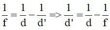 Áp dụng công thức thấu kính hội tụ với ảnh ảo