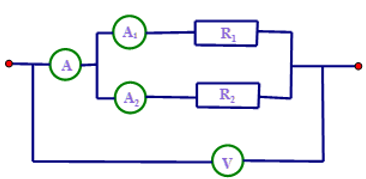 Ampe kế đang đo cường độ dòng điện qua mạch chính hay chính (tổng cường độ dòng điện qua điện trở R1 và R2)