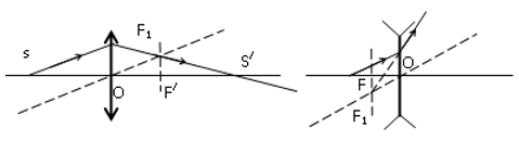 + Tia tới song song với trục phụ thì tia ló qua tiêu điểm phụ nên tia ló qua I và Fp’, tia ló này cắt trục chính tại S. S’ là ảnh cần xác định