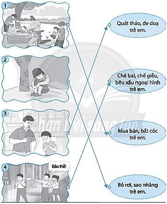 Vở bài tập HĐTN lớp 4 trang 16 Nhiệm vụ 5: Nối tranh với hành vi xâm hại tinh thần trẻ em cho phù hợp