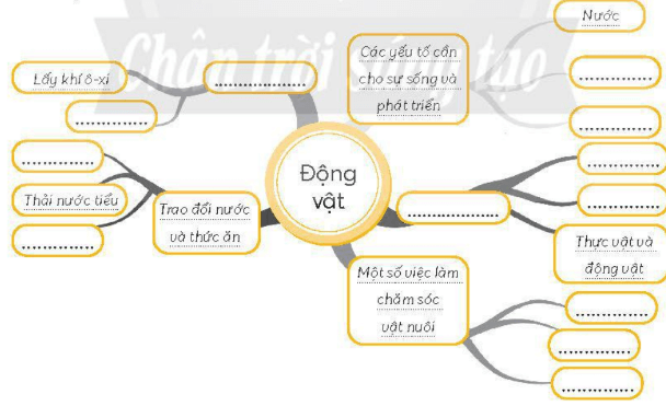 Câu 1 trang 55 VBT Khoa học lớp 4: Điền nội dung phù hợp để hoàn thành các sơ đồ tư duy về chủ đề Thực vật và động vật mà em đã học.