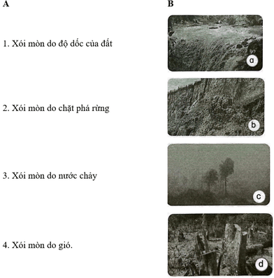 a) Nối nguyên nhân gây sói mòn đất ở cột A với hình ảnh ở cột B cho phù hợp.
