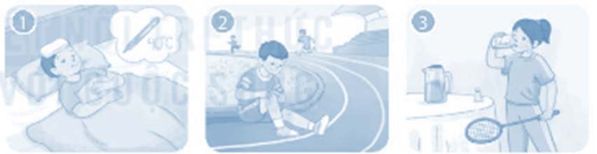 - Tranh 1: Hôm qua, Hoa gặp trời mưa nên bị sốt tới 39 độ.