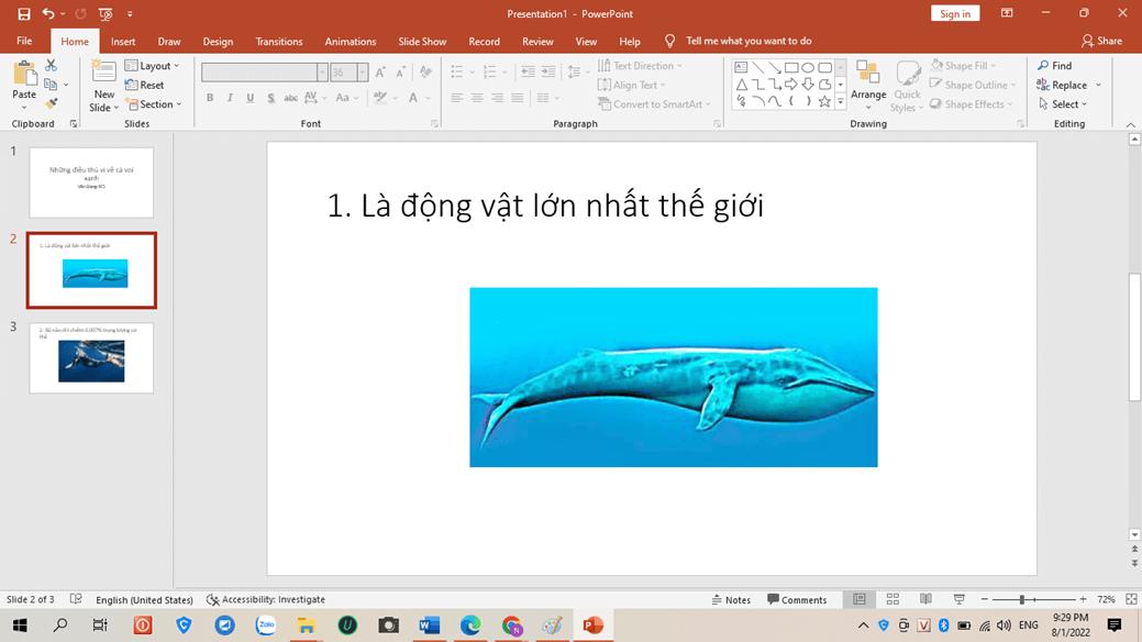 Vở bài tập Tin học lớp 3 trang 55 Câu E18: Kích hoạt phần mềm trình chiếu Powerpoint, tạo tệp trình chiếu mới với ba trang trình chiếu như bài tập trên. Lưu lại tệp trình chiếu với tên gọi: “Cavoixanh”