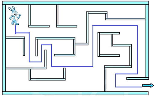 a) Em hãy vẽ đường giúp bạn thỏ thoát khỏi mê cung.