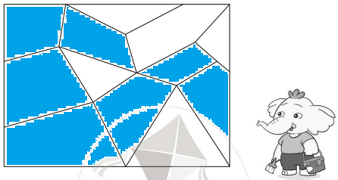 Bài 4 trang 69 Vở bài tập Toán lớp 2 Tập 1: Em hãy giúp bạn Voi tô màu xanh vào những mảnh ghép tứ giác trong hình dưới đây: