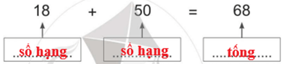 Bài 1 trang 12 Vở bài tập Toán lớp 2 Tập 1: Viết từ "số hạng" hoặc "tổng" thích hơp vào chỗ chấm: