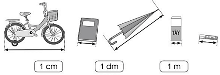 b) Đồ vật ngắn hơn 1 m: điện thoại, vở ghi, hộp bút, ...