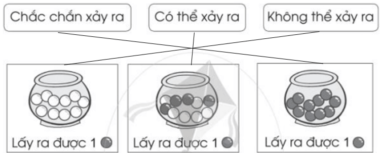 Bài 2 trang 85 Vở bài tập Toán lớp 2 Tập 2: Sử dụng các từ "chắn chắn", "có thể", "không thể" để mô tả tình huống trong bức tranh sau: