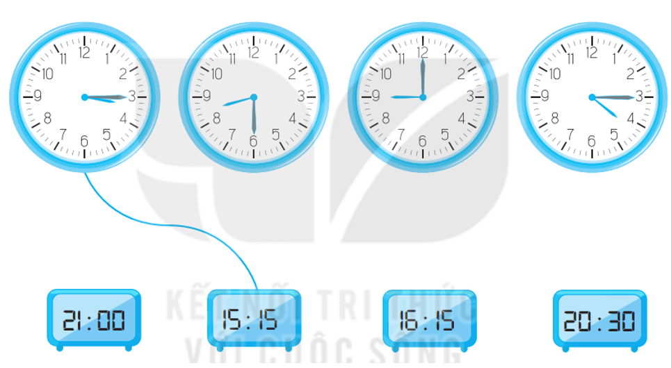 Như vậy đồng hồ chỉ 9 giờ tối hay 21 giờ 00 phút.