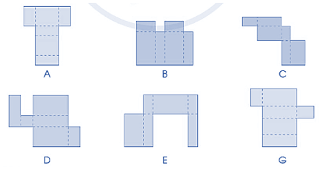 Vở bài tập Toán lớp 5 Tập 2 trang 81 Luyện tập, thực hành 4: Khoanh vào chữ đặt dưới mảnh bìa có thể gấp lại thành hình hộp chữ nhật: