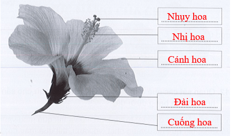 Vở bài tập Tự nhiên xã hội lớp 3 trang 41 Câu 9: Viết tên các bộ phận của hoa râm bụt vào chỗ …… cho phù hợp.