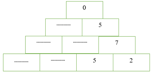 Bài 12 trang 54 vở thực hành Toán lớp 6 Tập 1: Điền số thích hợp vào chỗ chấm trong hình sau đây, sao cho tổng hai số nằm trong hai ô cạnh nhau trên mỗi dòng thì bằng số nằm trong ô kề với hai ô đó ở dòng trên.