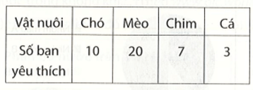 An khảo sát về thú nuôi được yêu thích của các bạn trong lớp và thu được kết quả như sau